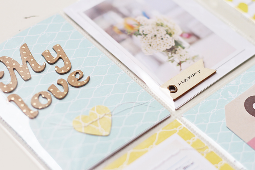 And here is my layout. First I added my photo and title, then some embellisments and paper strips on the top and bottom of the page. It looks like a small collage.